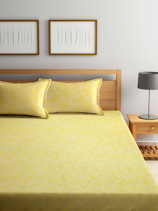 FABINALIV Yellow Floral 100% Cotton Handwoven King Size Double Bedcover with 2 Pillow Covers (250X225 cm)