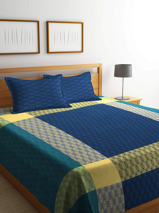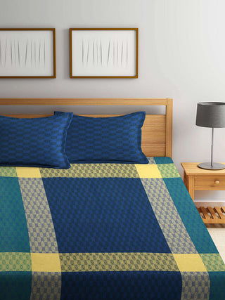FABINALIV Blue Chevron 100% Cotton Handwoven King Size Double Bedcover with 2 Pillow Covers (250X225 cm)