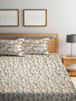FABINALIV Multicolor Floral Cotton King Size Quilted Double Bedsheet with 2 Pillow Covers (250X225 cm)