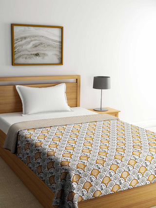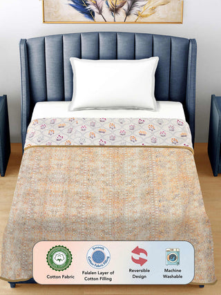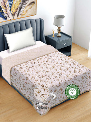 FABINALIV Brown Floral Reversible AC Room 300 GSM 100% Cotton Single Bed Dohar