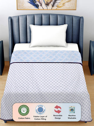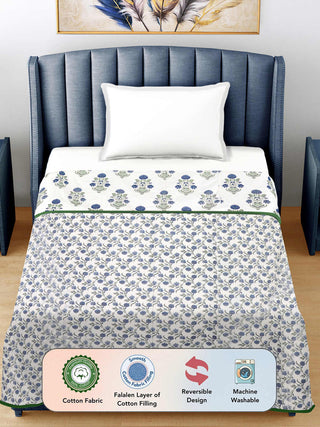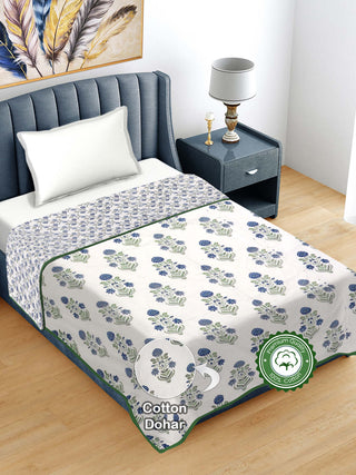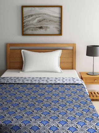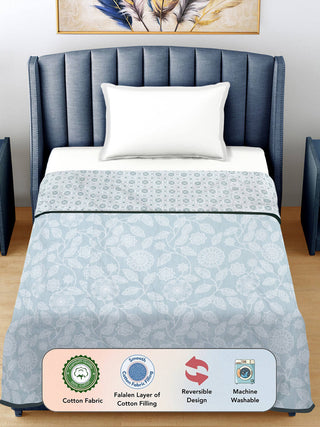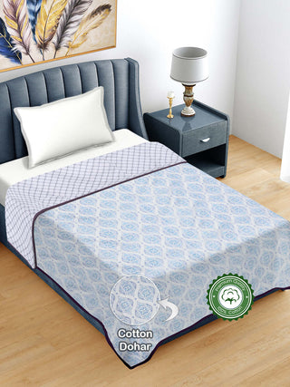 FABINALIV Blue Ethnic Reversible AC Room 300 GSM 100% Cotton Single Bed Dohar