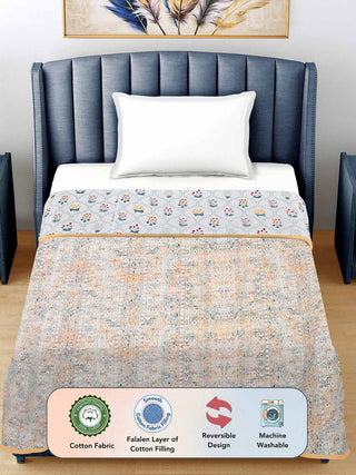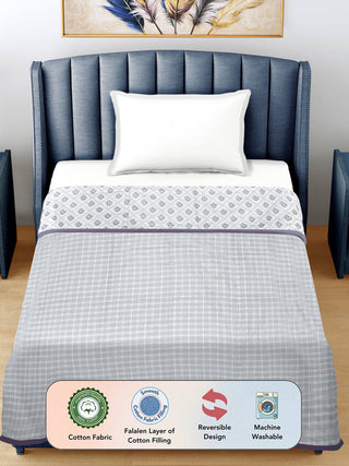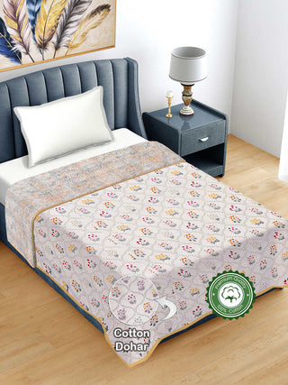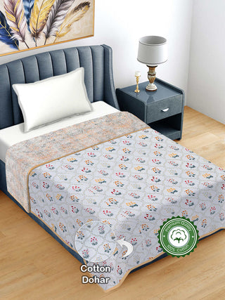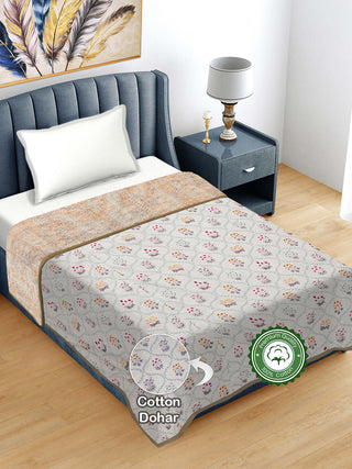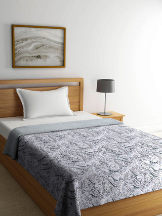 FABINALIV Grey Floral Reversible AC Room 300 GSM 100% Cotton Single Bed Dohar