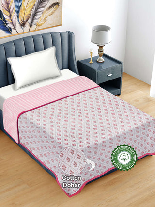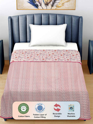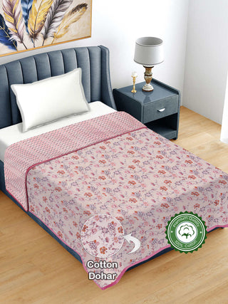 FABINALIV Pink Ethnic Reversible AC Room 300 GSM 100% Cotton Single Bed Dohar