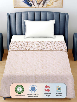 FABINALIV Peach Floral Reversible AC Room 300 GSM 100% Cotton Single Bed Dohar