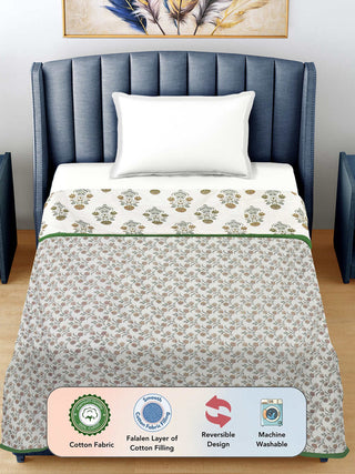 FABINALIV Multicolor Floral Reversible AC Room 300 GSM Pure Cotton Single Bed Dohar