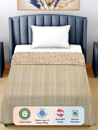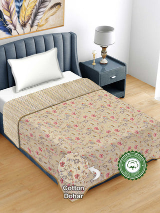 FABINALIV Beige Floral Reversible AC Room 300 GSM 100% Cotton Single Bed Dohar