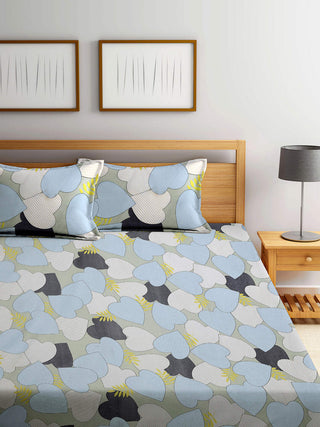 FABINALIV Grey Floral 300 TC Cotton Blend Super King Size Fitted Double Bedsheet with 2 Pillow Covers (270X270 cm)