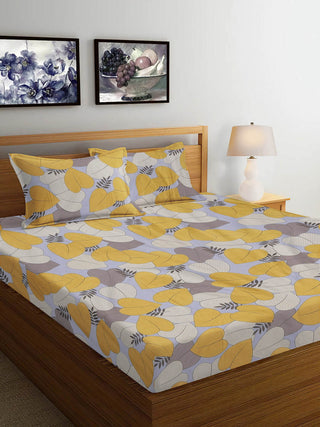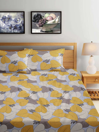 FABINALIV Grey Floral 300 TC Cotton Blend Super King Size Double Bedsheet with 2 Pillow Covers (270X270 cm)
