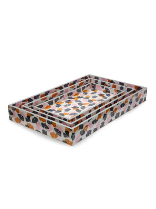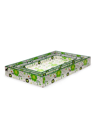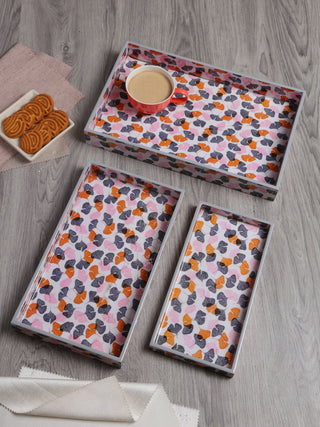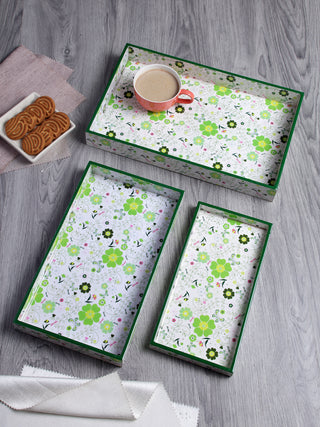 FABINALIV Set of 3 Multicolor Floral Rectangular Wooden Serving Trays