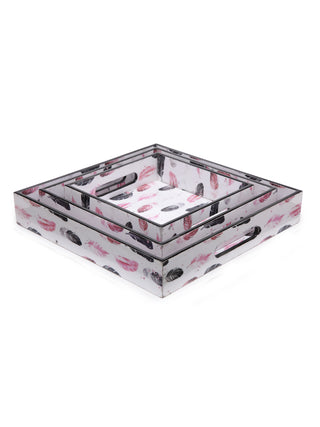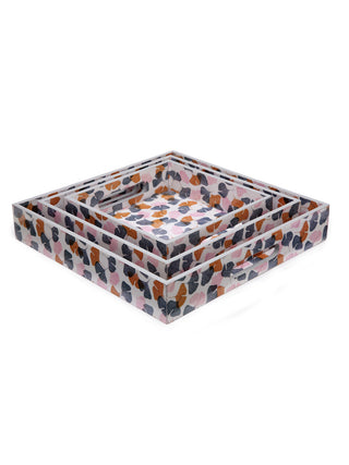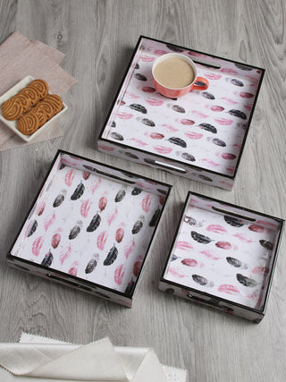 FABINALIV Set of 3 Multicolor Floral Square Wooden Serving Trays
