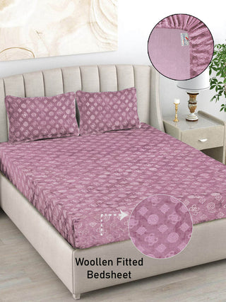 FABINALIV Onion Solid 300 TC Woollen King Size Fitted Double Bedsheet with 2 Pillow Covers (250X225 cm)