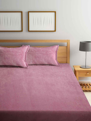 FABINALIV Raisin Purple Solid 300 TC Woollen King Size Fitted Double Bedsheet with 2 Pillow Covers (250X225 cm)
