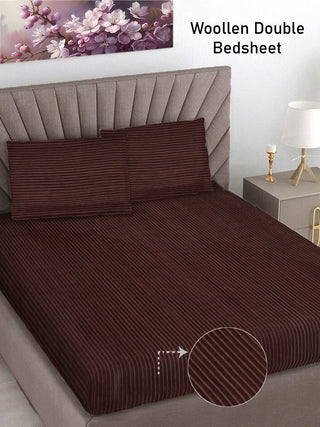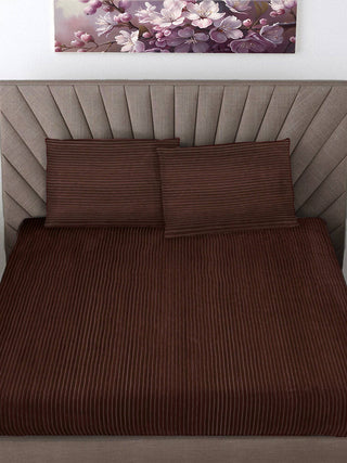 FABINALIV Coffee Striped 300 TC Woollen King Size Double Bedsheet with 2 Pillow Covers (250X225 cm)
