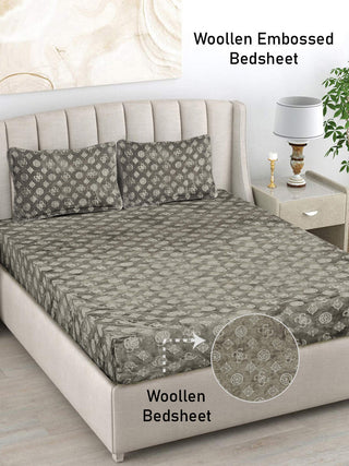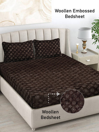 FABINALIV Coffee Geometric 300 TC Woollen Embossed King Size Double Bedsheet with 2 Pillow Covers (250X225 cm)