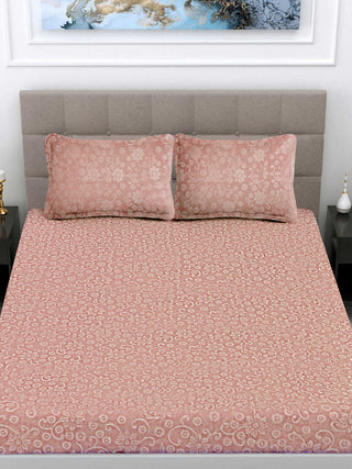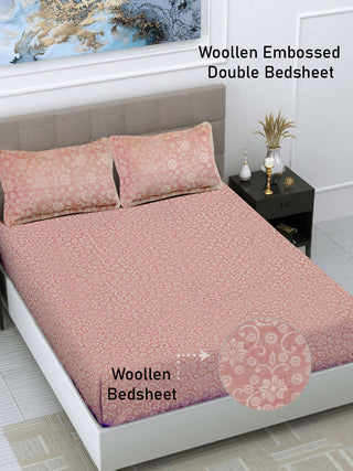 FABINALIV Peach Floral 300 TC Woollen Embossed King Size Double Bedsheet with 2 Pillow Covers