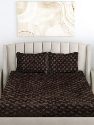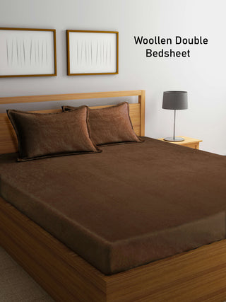 FABINALIV Chocolate Solid 300 TC Woollen King Size Double Bedsheet with 2 Pillow Covers