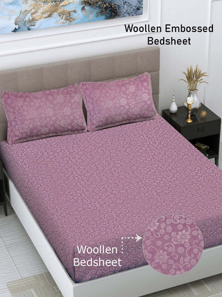 FABINALIV Onion Floral 300 TC Woollen Embossed King Size Double Bedsheet with 2 Pillow Covers (250X225 cm)