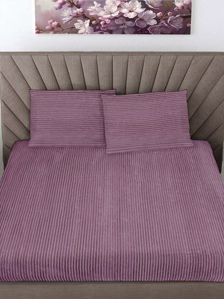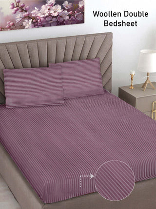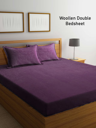 FABINALIV Raisin Purple Solid 300 TC Woollen King Size Double Bedsheet with 2 Pillow Covers (250X225 cm)
