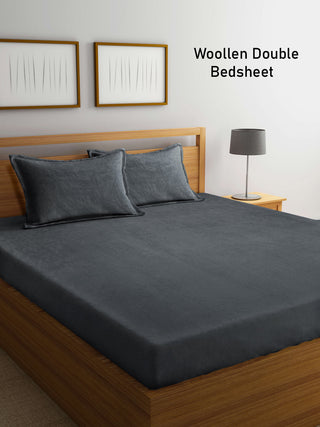 FABINALIV Dark Grey Solid 300 TC Woollen King Size Double Bedsheet with 2 Pillow Covers