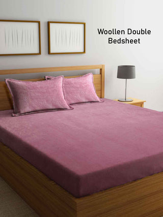 FABINALIV Onion Solid 300 TC Woollen King Size Double Bedsheet with 2 Pillow Covers (250X225 cm)