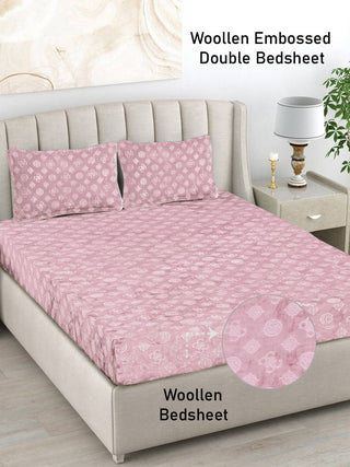 FABINALIV Baby Pink Geometric 300 TC Woollen Embossed King Size Double Bedsheet with 2 Pillow Covers