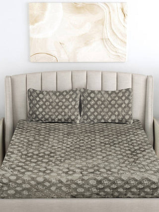 FABINALIV Mouse Geometric 300 TC Woollen Embossed King Size Double Bedsheet with 2 Pillow Covers (250X225 cm)